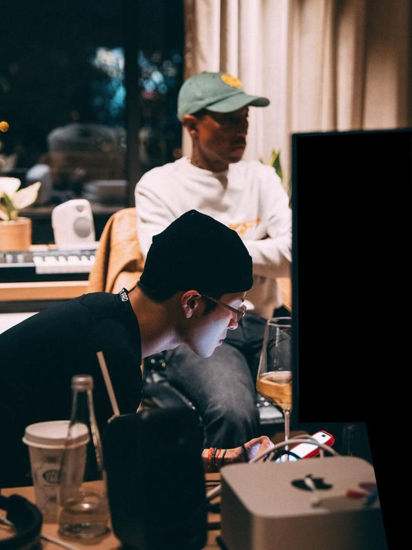 Here’s a photo of Jackson Wang in the studio with Pharrell. This is likely from the session where they recorded “Sex God,” which debuted during Pharrell’s Louis Vuitton FW26-27 show on Jan. 20. It’s unclear whether they recorded more tracks, but stay tuned for more information